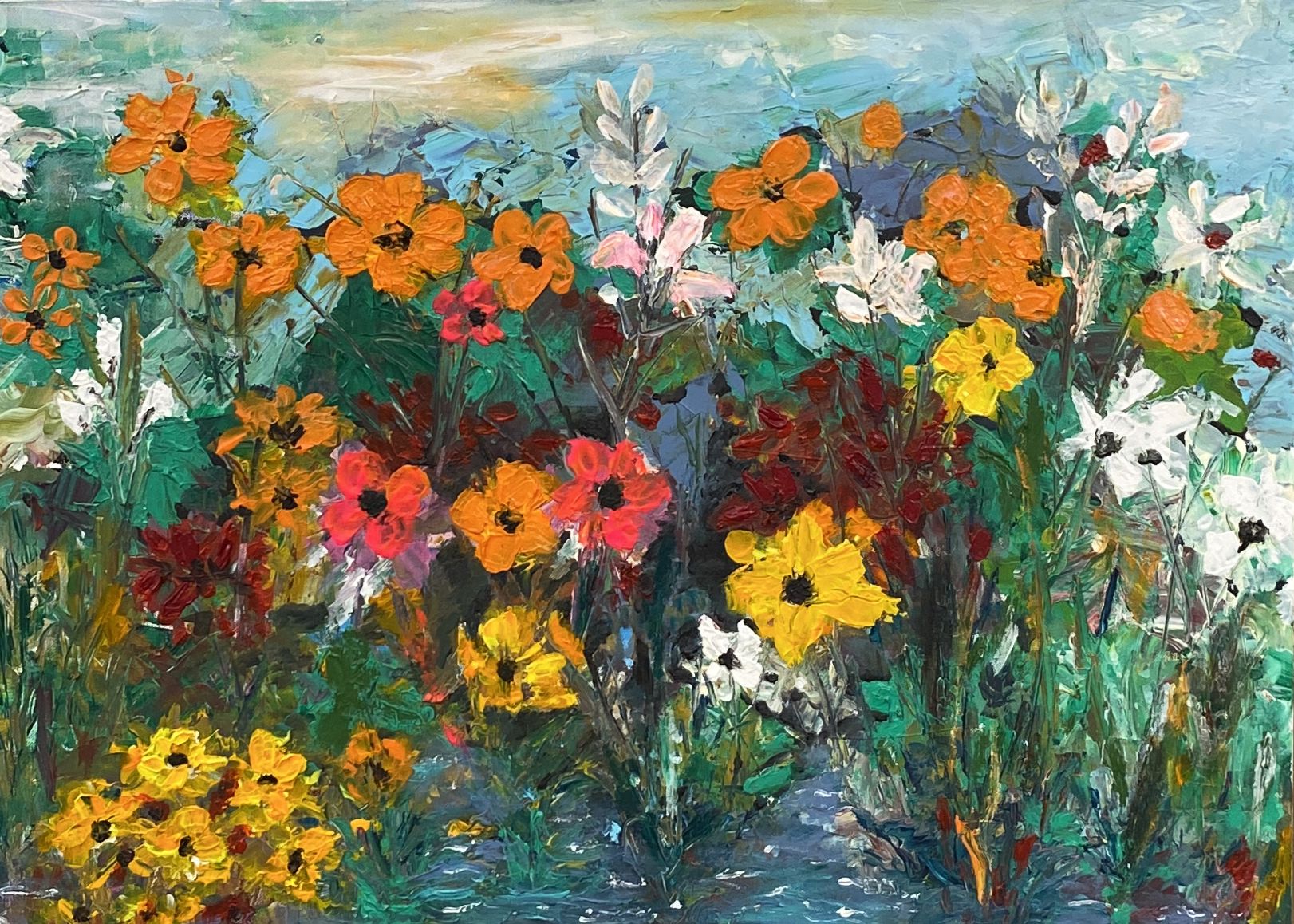 לבלוב – ציור שמן של רחל שפירא. ציור יפה ומתאים לכל אווירה בית או משרד.